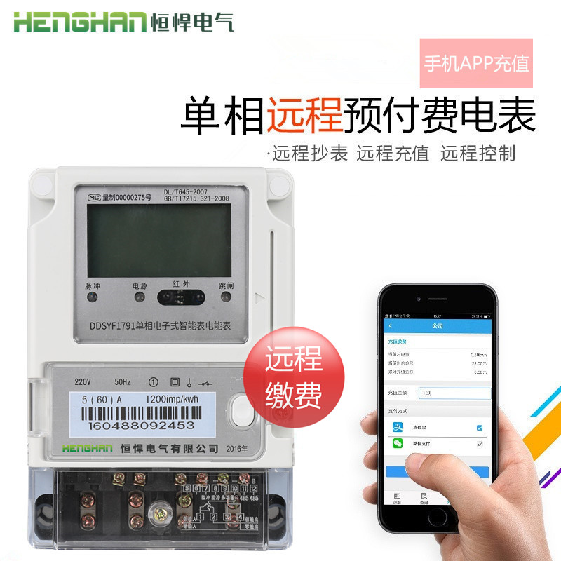 恒悍單相預付費電表型號證...
